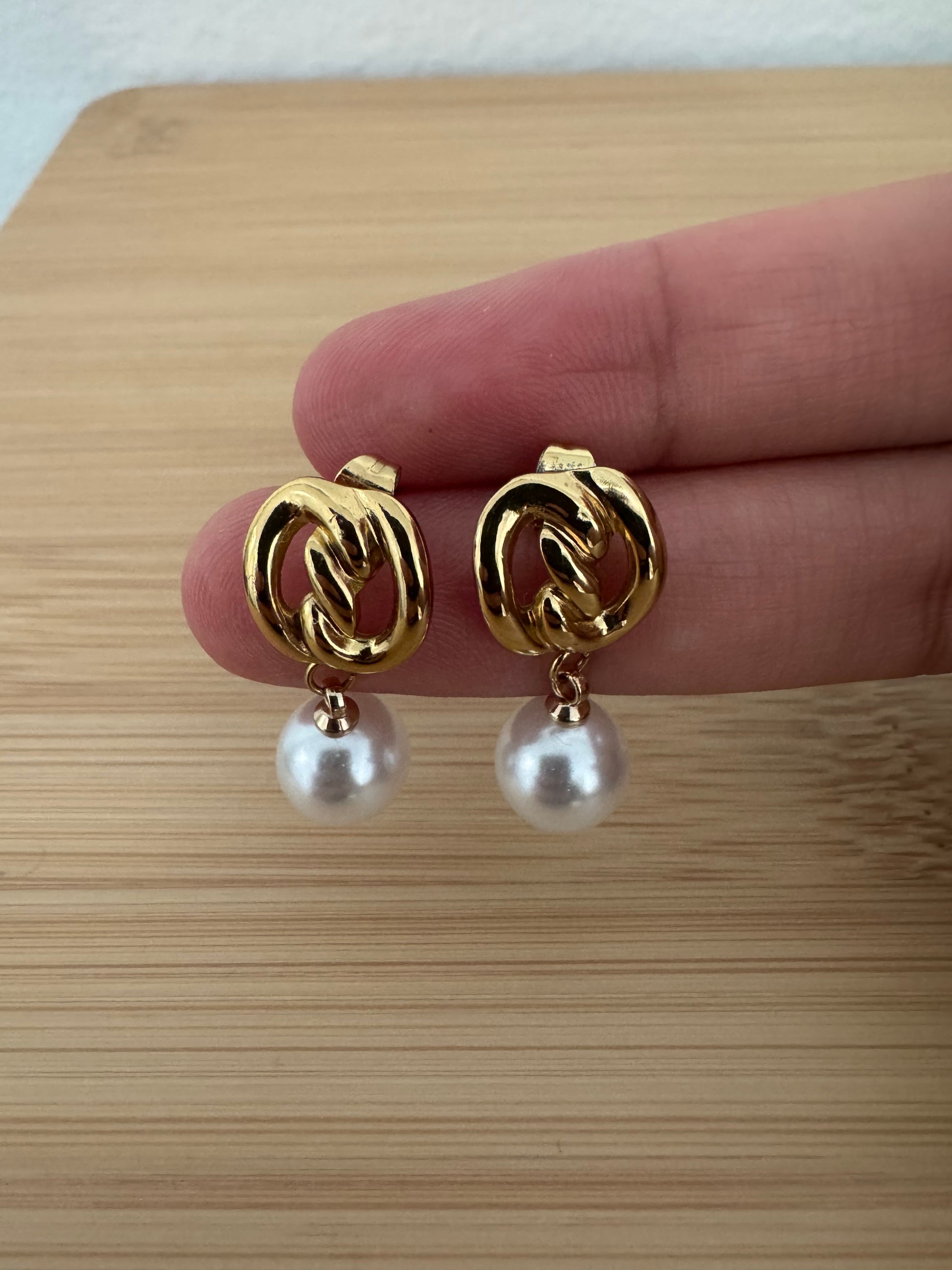 A timeless blend of modern edge and classic charm — these earrings feature a bold, twisted gold knot paired with a lustrous pearl drop.